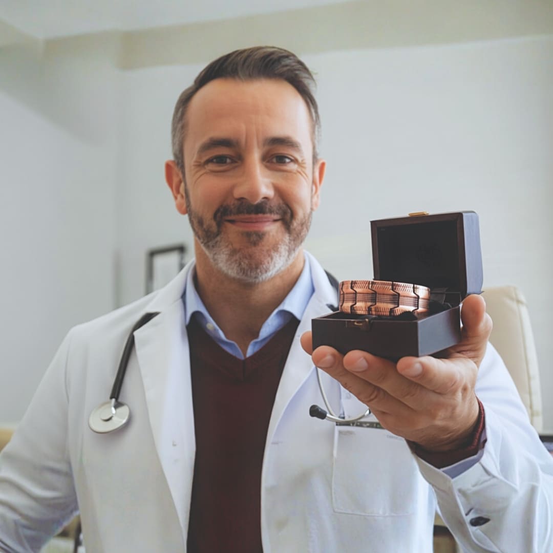 J'en avais marre de prendre des cachets pour mon arthrose dans les doigts donc j'essaie ça. Ça fait 10 jours que je l'ai. Je sais pas si c'est le cuivre ou les aimants mais j'ai l'impression d'avoir un peu moins mal le matin au réveil. Après c'est pas magique non plus hein, mais c'est toujours ça de pris. Et il est joli, ça fait pas truc de vieux.